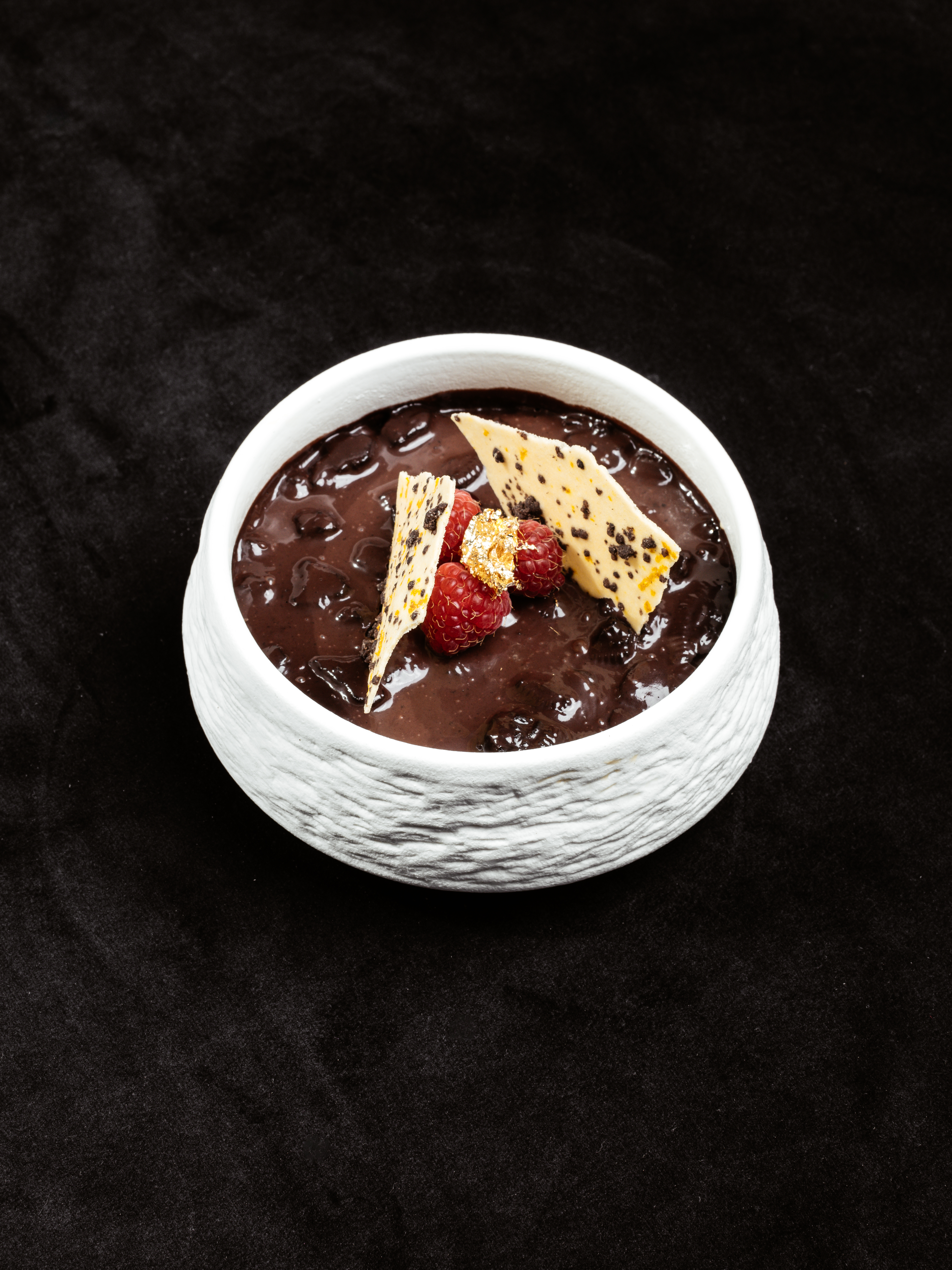 egg white, cream cheese, raspberry sauce, seasonal fruits