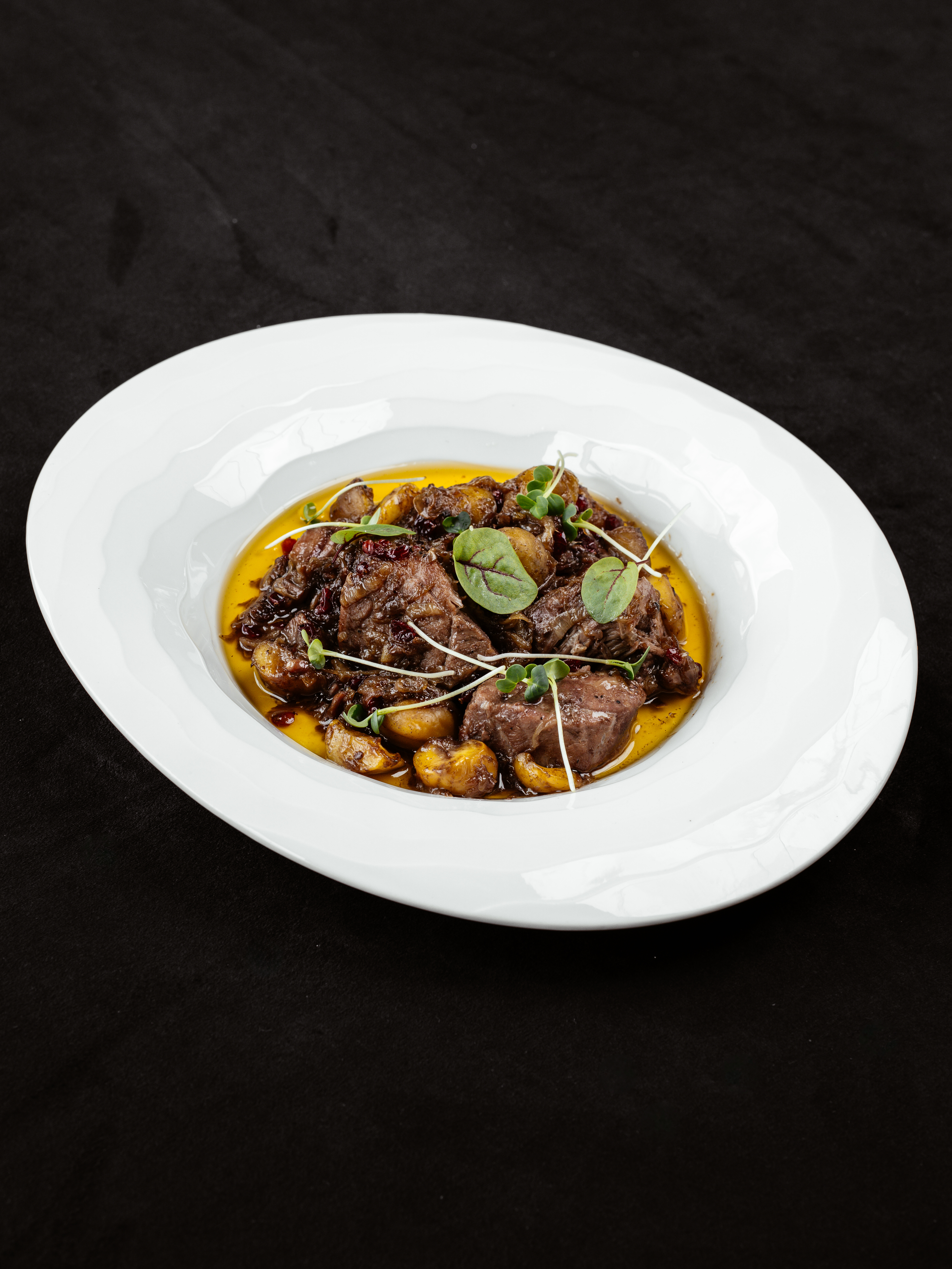 beef tenderloin, specially fried potatoes, smoked cream sauce